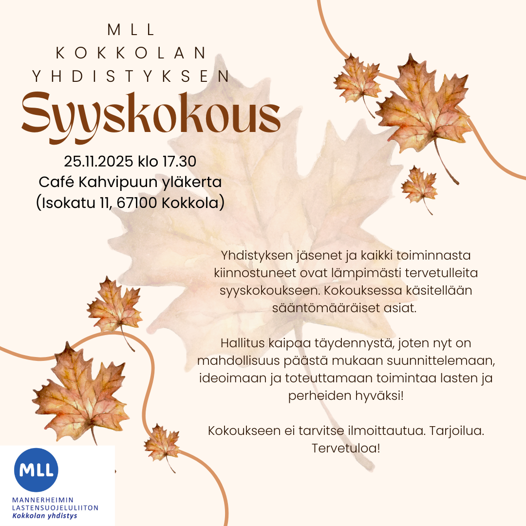 MLL Kokkolan yhdistyksen syyskokous 19.11.2024 Touhutalossa